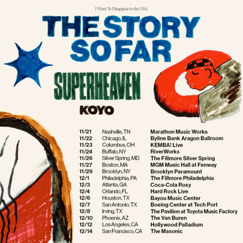 The Story So Far, a rock band hailing from California, is hitting the road this fall for a U.S. tour in support of their latest album, I Want To Disappear. Joining them on this nationwide journey will be Superheaven and Koyo, making it a tour to remember.